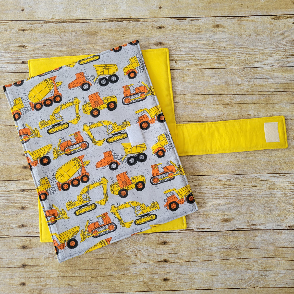 This fabric is perfect for your construction loving child. The inside fabric is yellow to match.